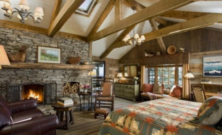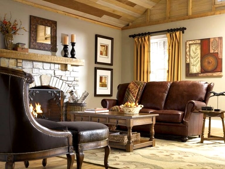 Домотканые коврики красиво смотрят рядом с кроватью, а на стены можно повесить картины с пейзажами или чучелами животных. На сервантах, Пинап сундуках или этажерках найдётся место вышитым или связанным крючком салфеткам и льняным скатертям. И, конечно же, не обойтись на диванах без подушек.