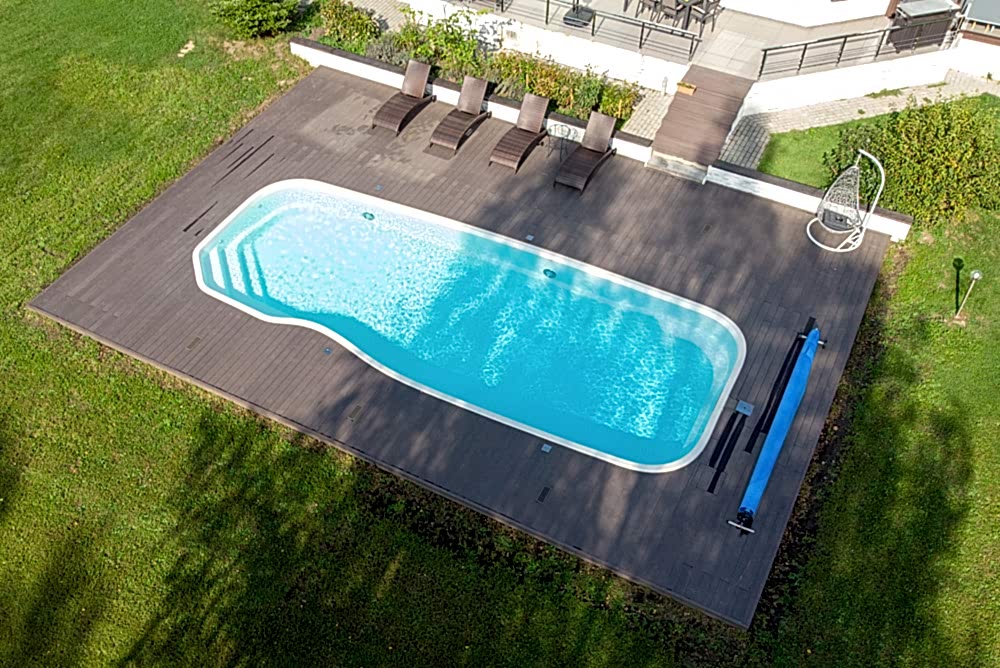 Плавательная зона составляет 10,3 метров и имеет покатое дно с Пинап глубиной от 1,05 до 1,09 в глубокой части. Такая глубина позволяет установить взрослую горку для ныряния.