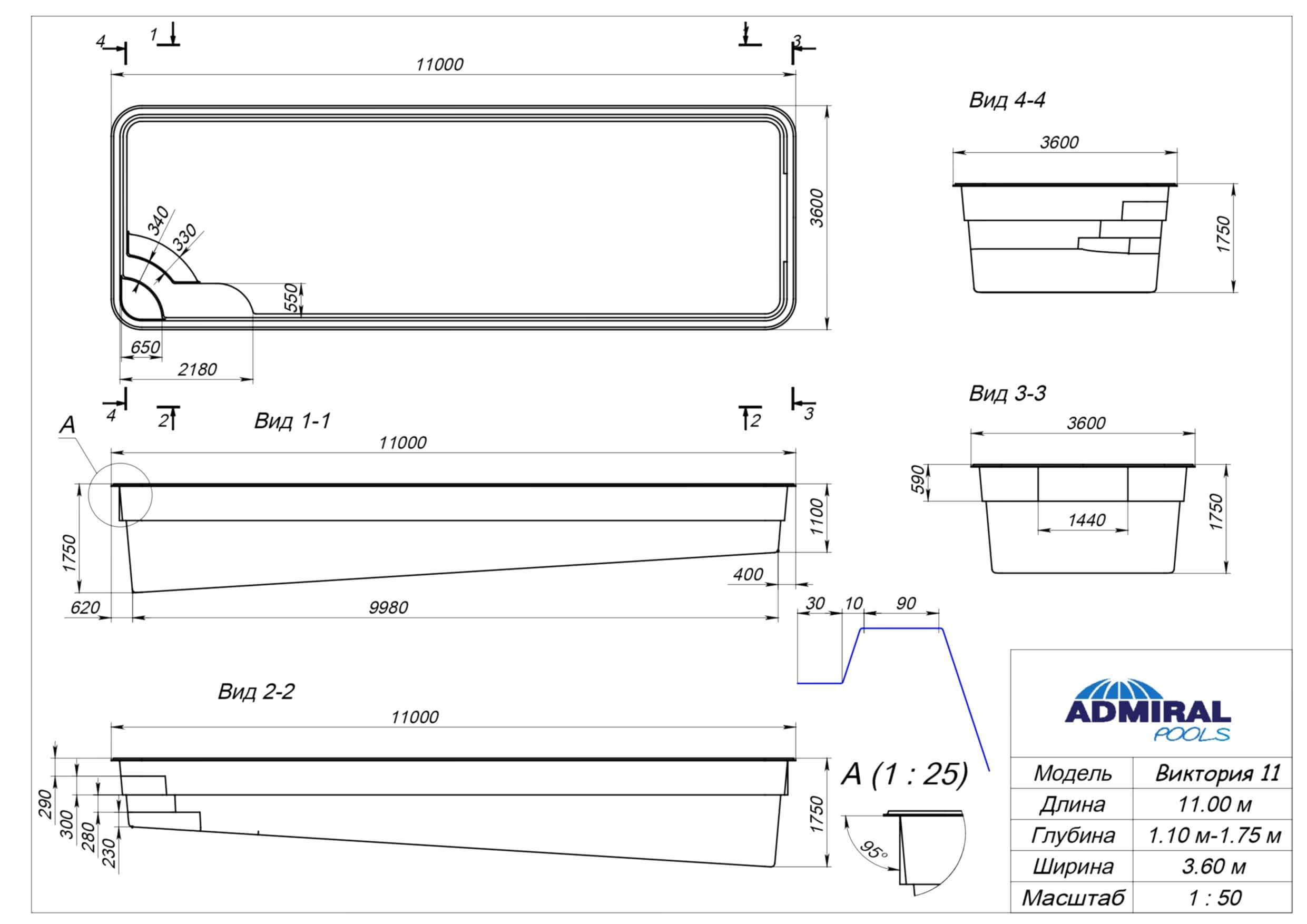 Модель бассейна «Виктория 11» придется по вкусу любителям консерватизма за счет сдержанности форм и четкости линий.