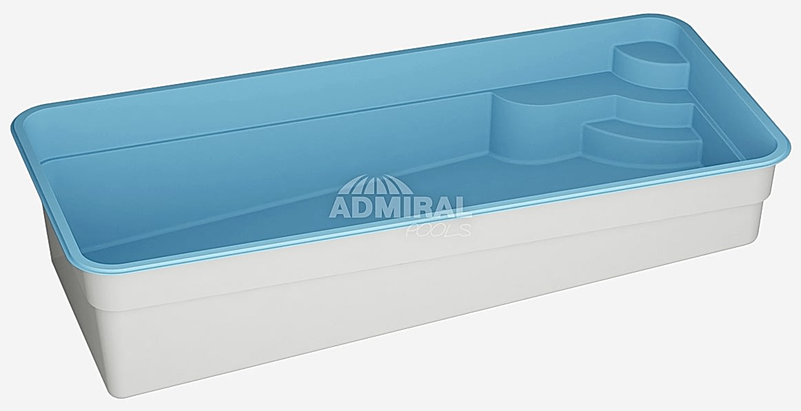 Имеет Пинап углы и длинные борта. Оснащена удобной римской лестницей для обеспечения удобного входа в воду и небольшой диван для отдыха в не глубокой части бассейна.