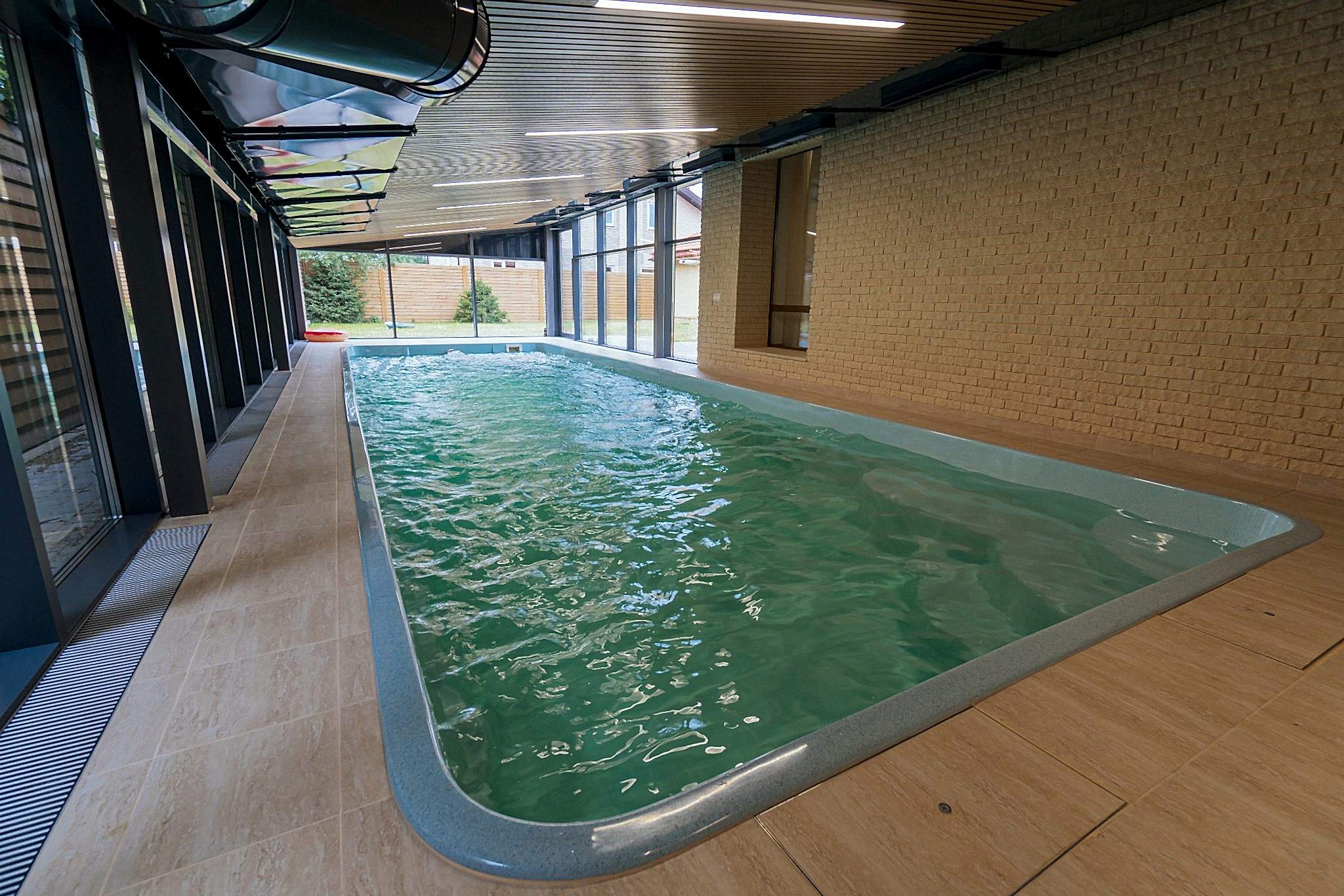 Плавательная зона составляет 11 метров и Пинап покатое дно с переменной глубиной от 1.1 до 1.75 метров в глубокой части. Такая глубина позволяет установить детскую горку для ныряния.