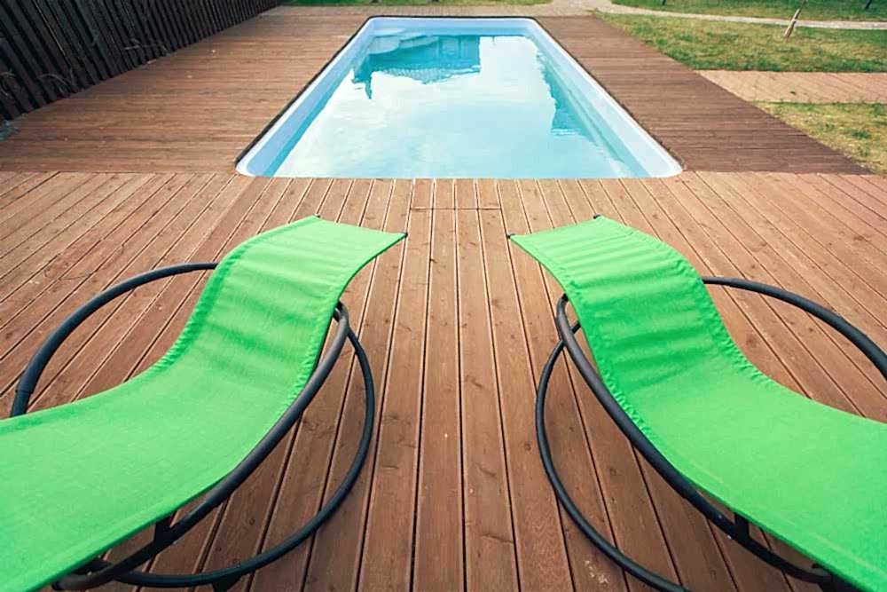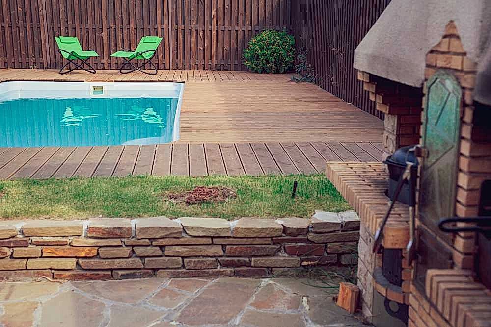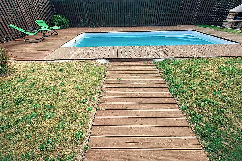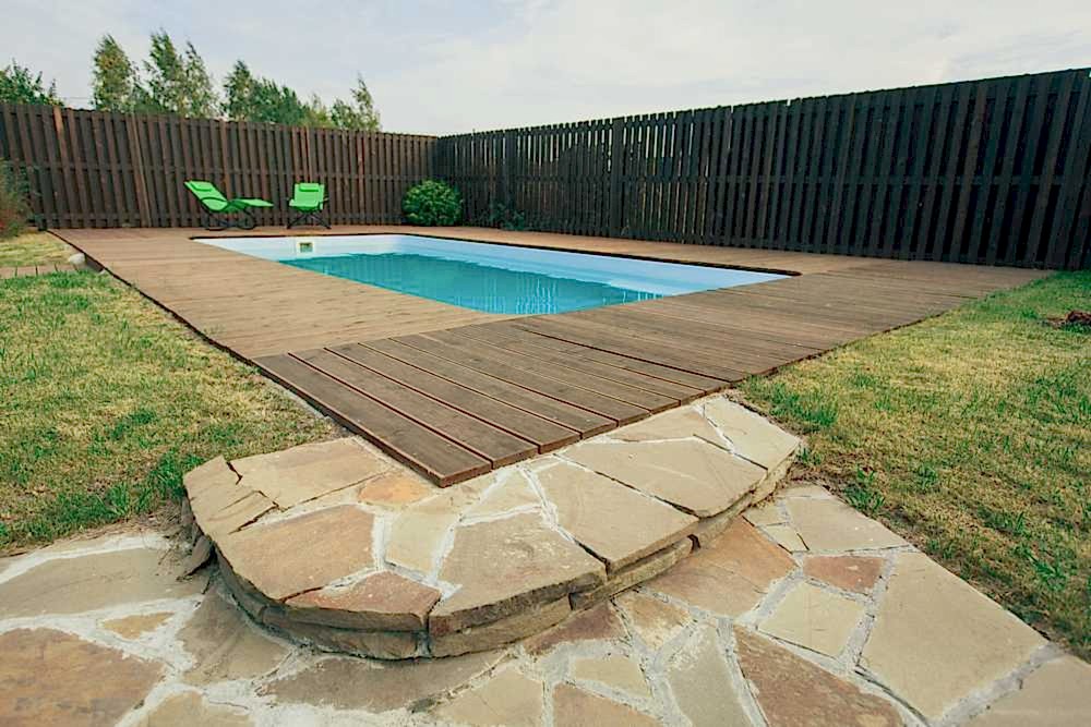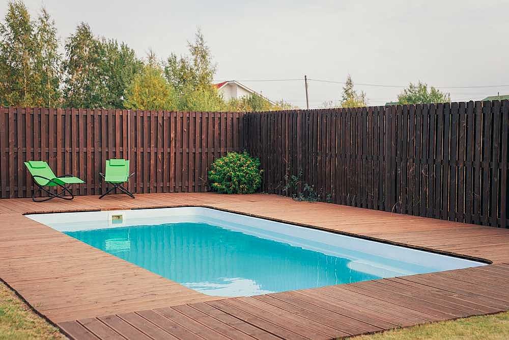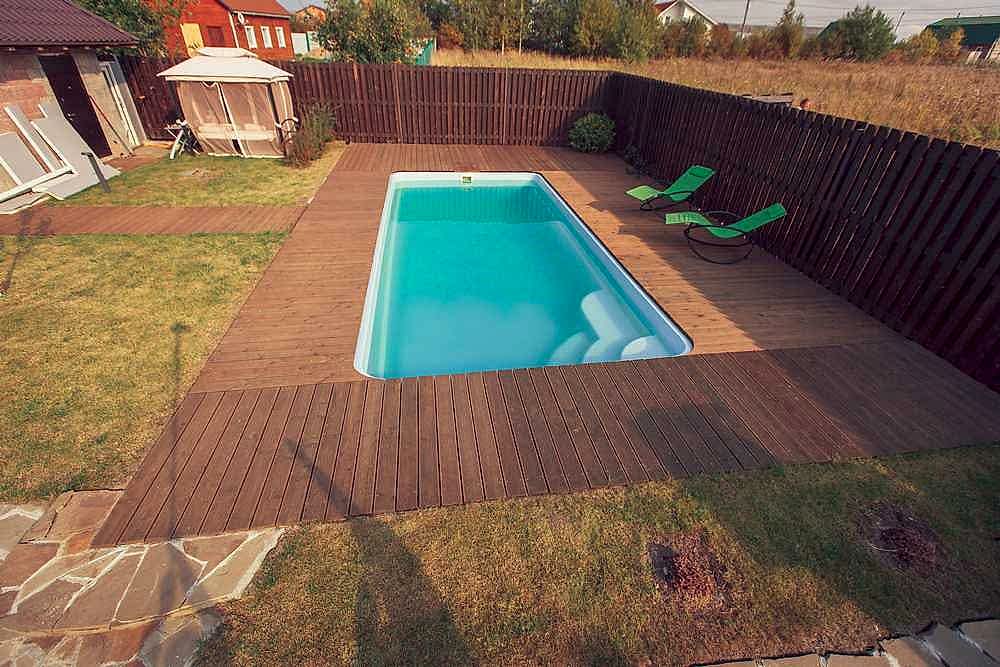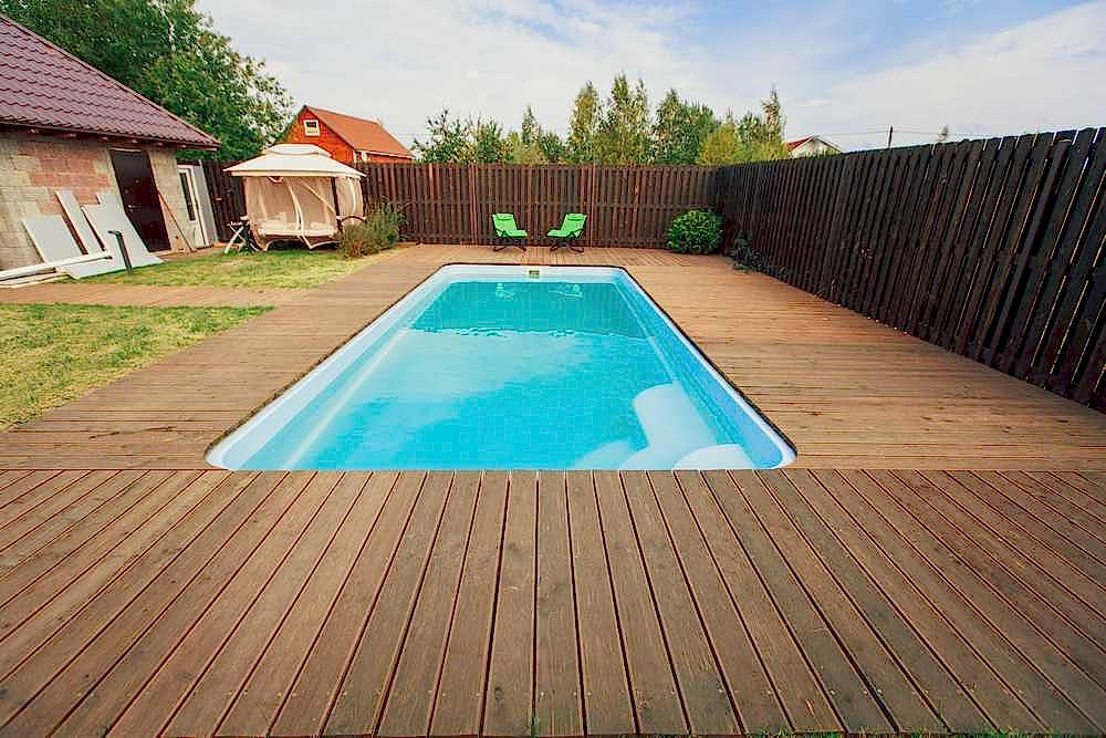 Плавательная зона составляет 7,7 метров и имеет покатое дно с переменной глубиной от 1.15 до 1.75 метров в глубокой части. Такая глубина позволяет установить детскую Пинап для ныряния.