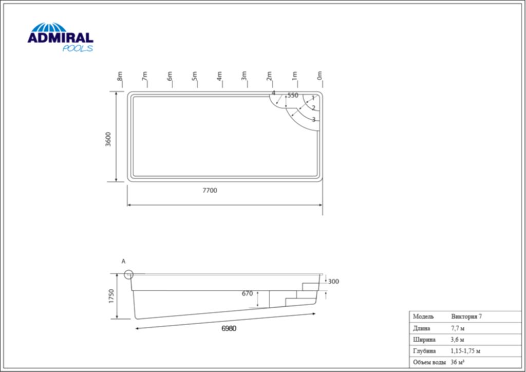 Модель бассейна «Виктория 7» придется по вкусу Пинап консерватизма за счет сдержанности форм и четкости линий.