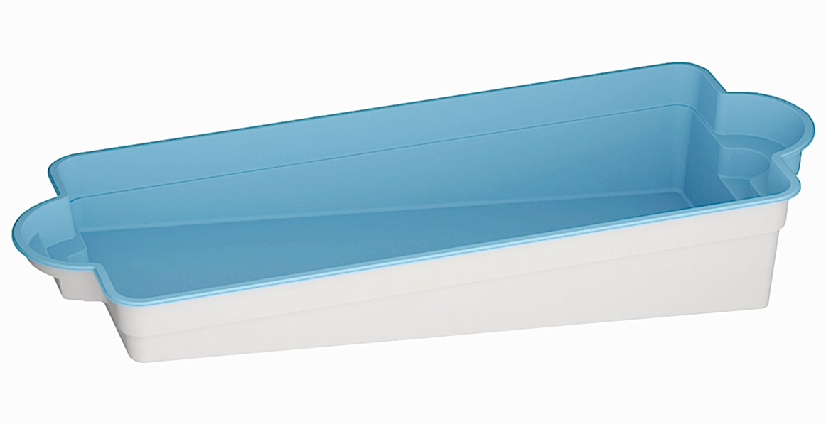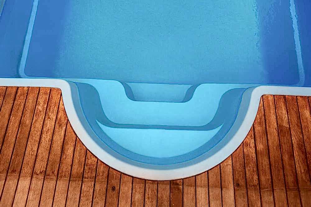 Благодаря своей ширине (4,10 метров) относится к классу Пинап Имеет классическую прямоугольную форму чаши со скругленными углами. Оснащен римской лестницей для обеспечения удобного входа в воду, которая представляет собой полукруглые, плавно нисходящие в глубину ступени, расположенные в мелководной зоне бассейна. Удобный диван в глубокой части позволяет с особым комфортом наслаждаться водными процедурами под солнцем.