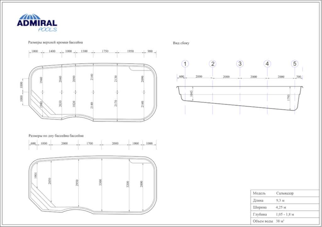 Имеет комфортную закругленную форму силуэта чаши. Оснащен римской лестницей для обеспечения удобного входа в воду, которая представляет собой плавно нисходящие в глубину Пинап расположенные в боковой части бассейна в мелководной зоне.