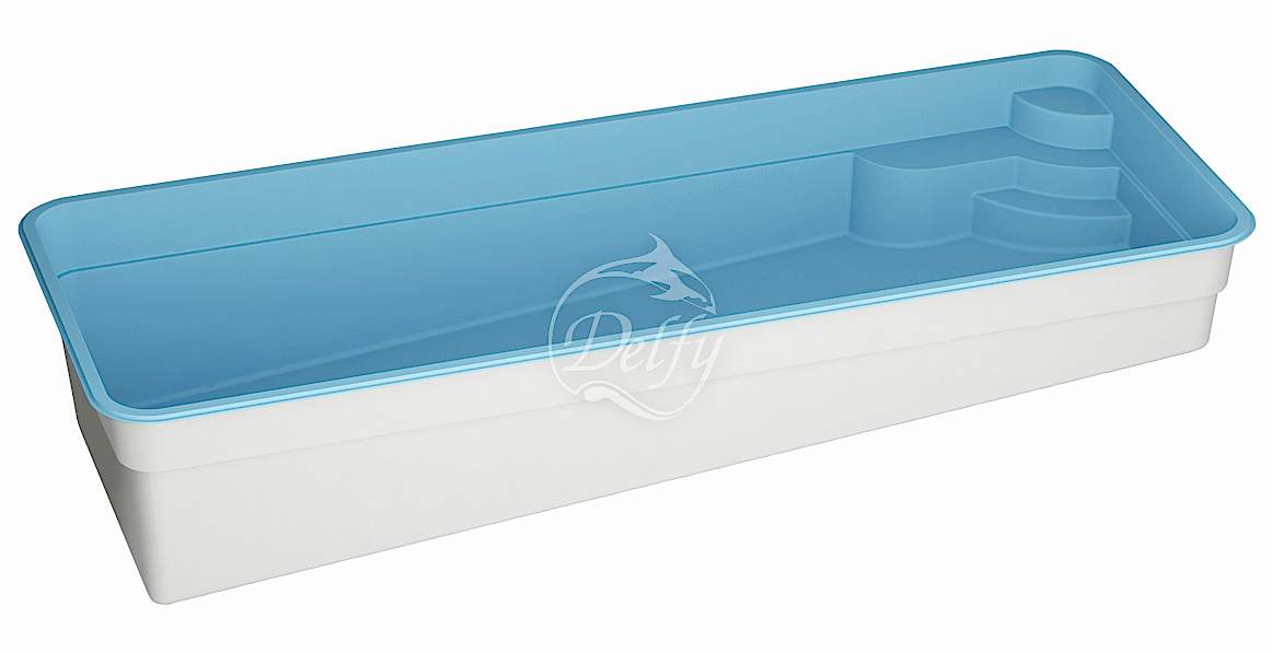 Имеет прямые углы и длинные Пинап Оснащена удобной римской лестницей для обеспечения удобного входа в воду и небольшой диван для отдыха в не глубокой части бассейна.