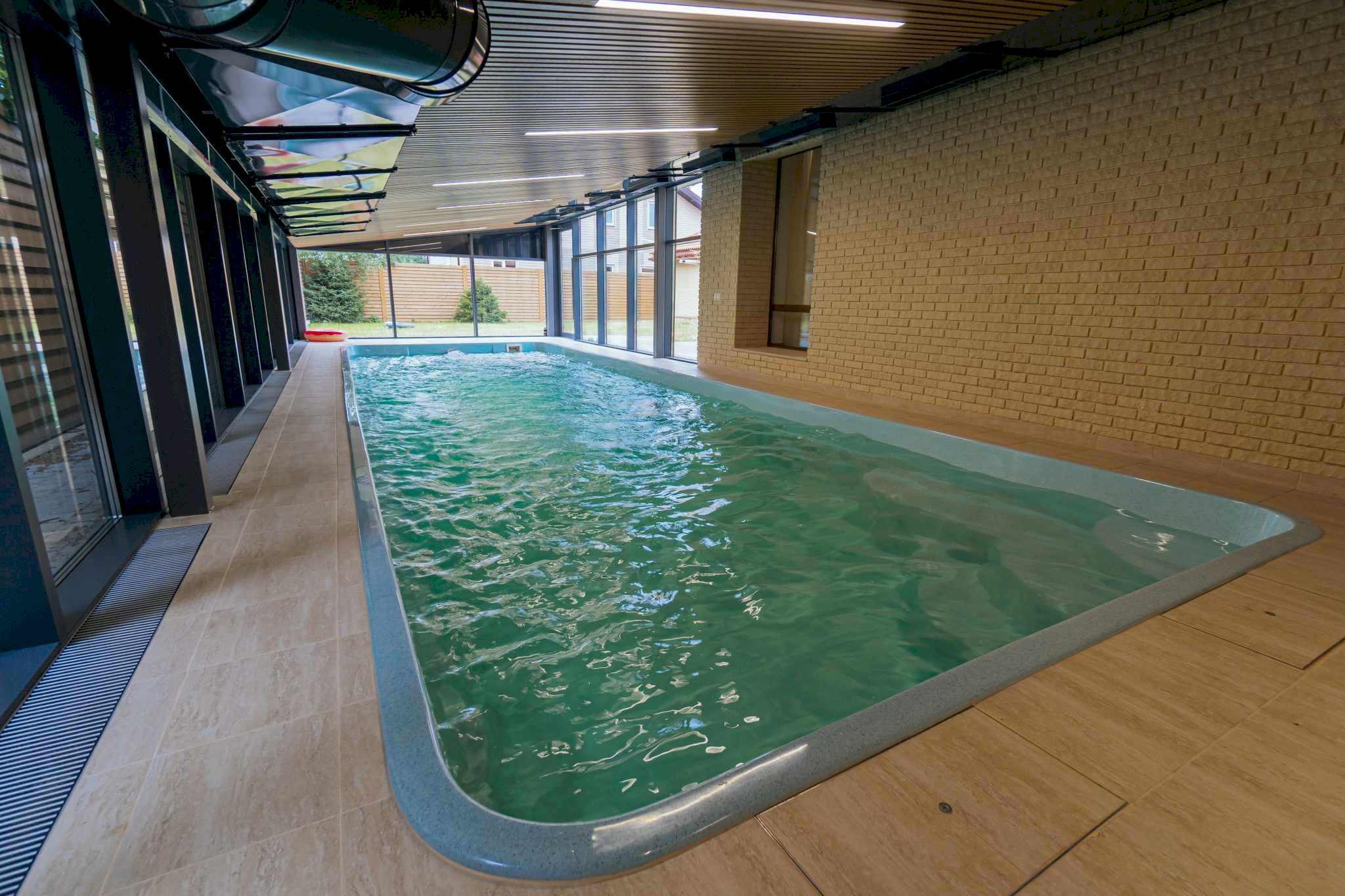 Плавательная зона Пинап 11 метров и имеет покатое дно с переменной глубиной от 1.1 до 1.75 метров в глубокой части. Такая глубина позволяет установить детскую горку для ныряния.