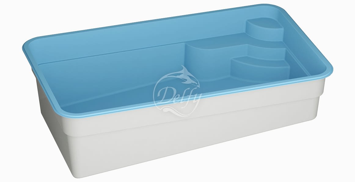 Имеет Пинап углы и длинные борта. Оснащен удобной римской лестницей для обеспечения удобного входа в воду и небольшой диван для отдыха в неглубокой части бассейна.