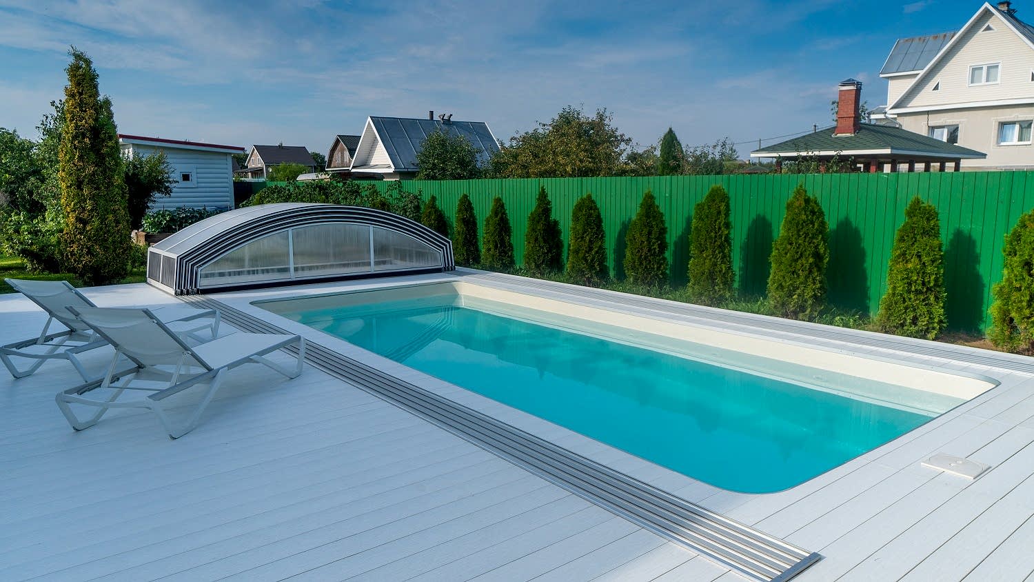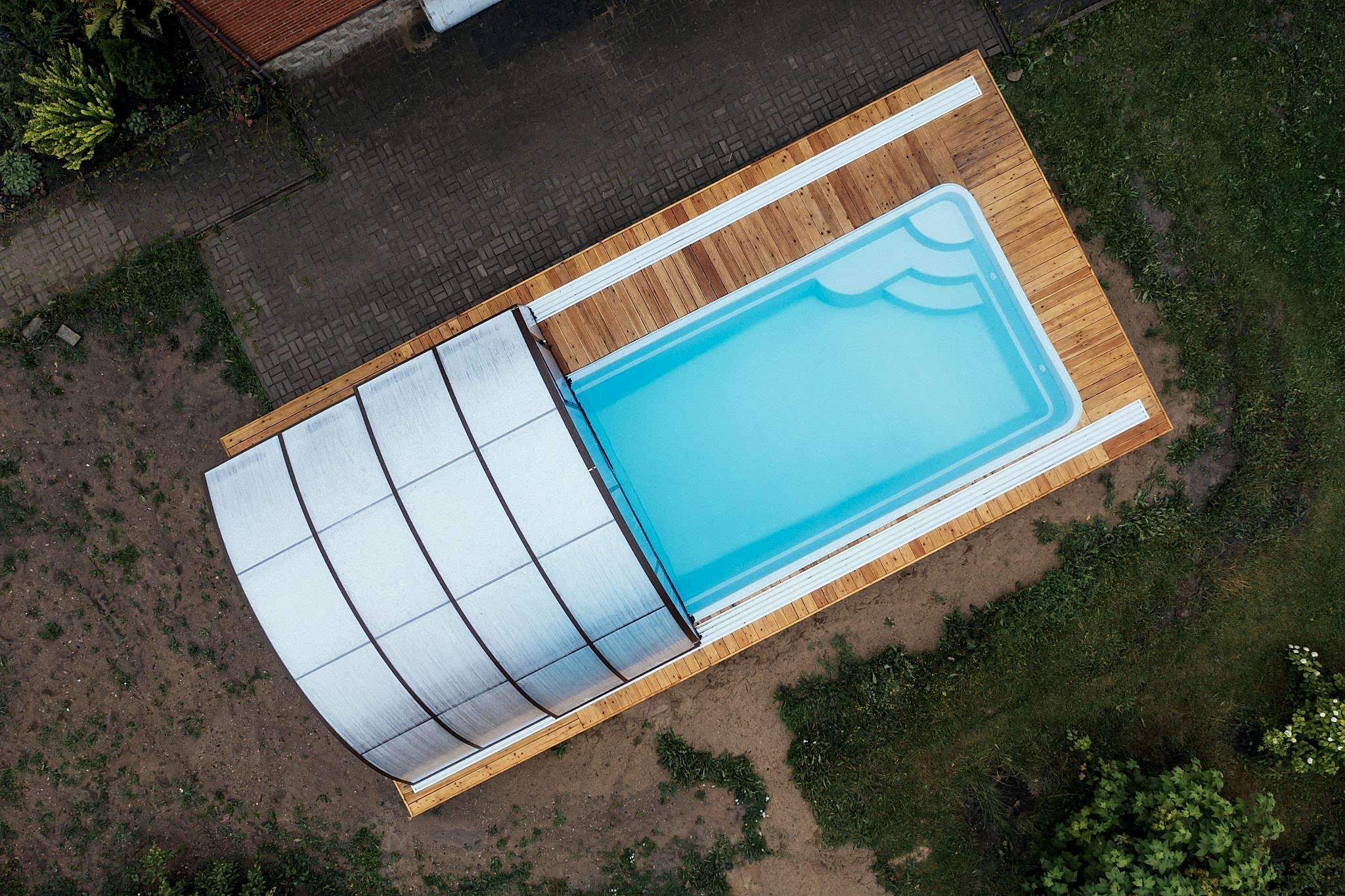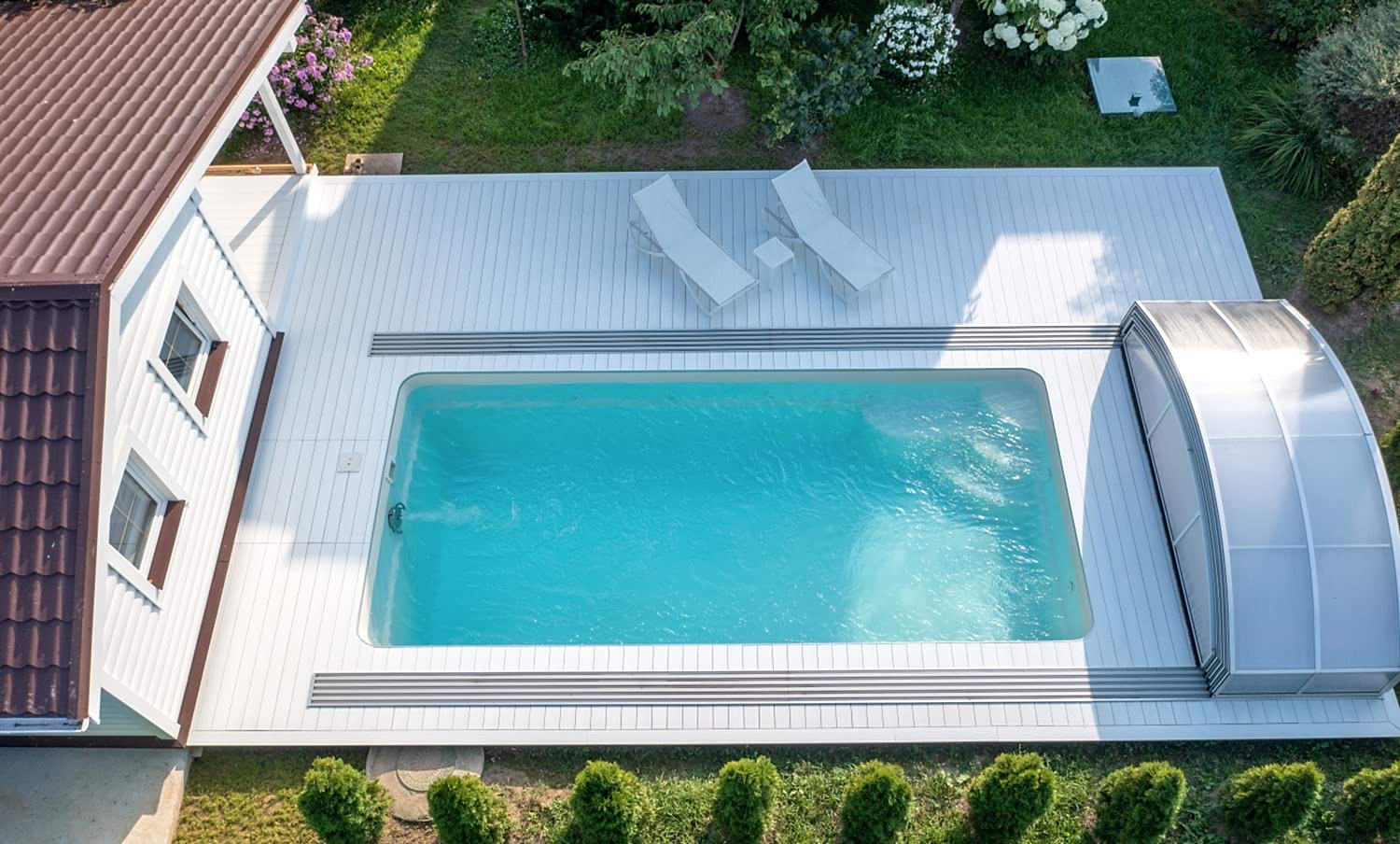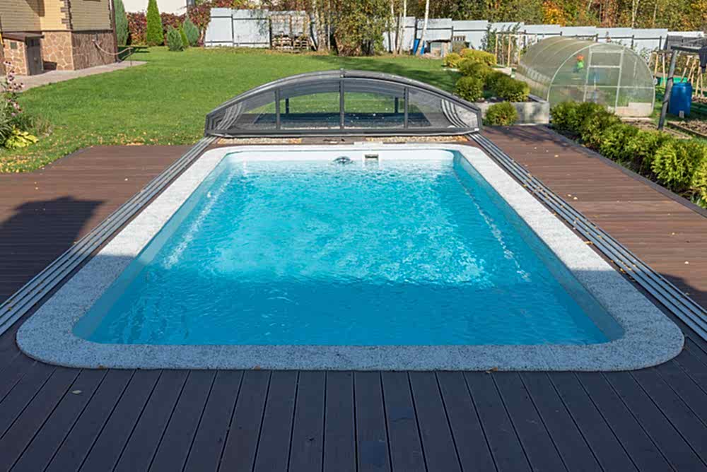 Данный бассейн правильной формы со ступенями, диваном и наклонным дном оптимальный вариант для плавания, водного фитнеса и Пинап в целом.