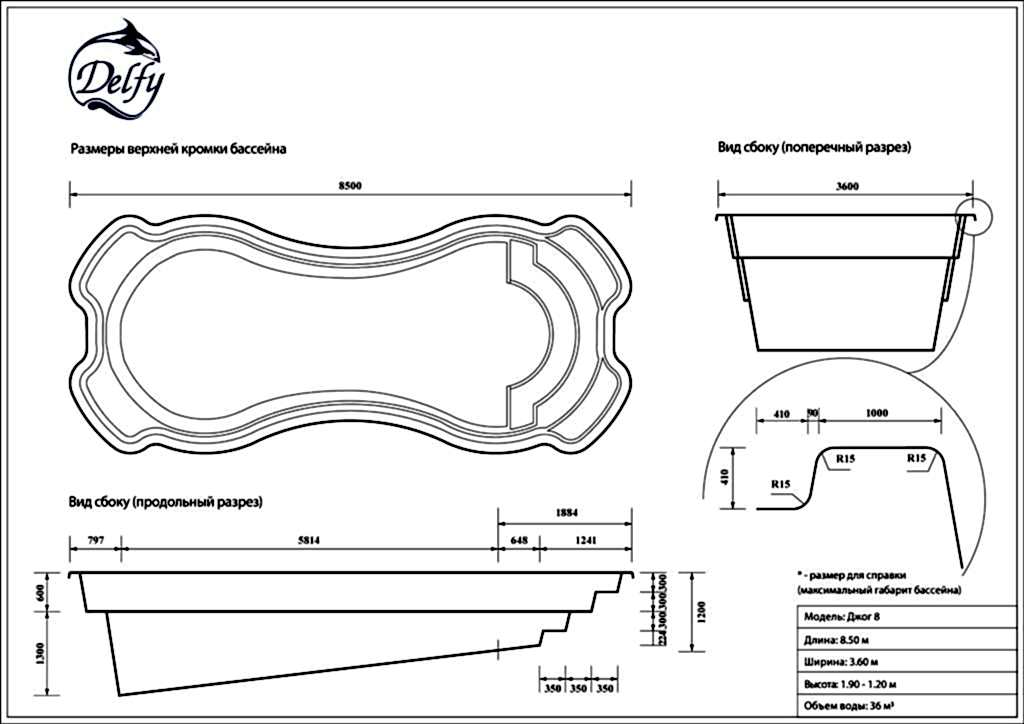 Джог 8 имеет наклонное дно с максимальной глубиной 1,9 м и минимальной - 1,2 м. Удобно нырять, просторно плавать - идеальный бассейн по отличной Пинап