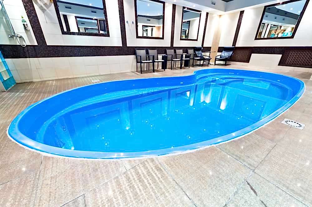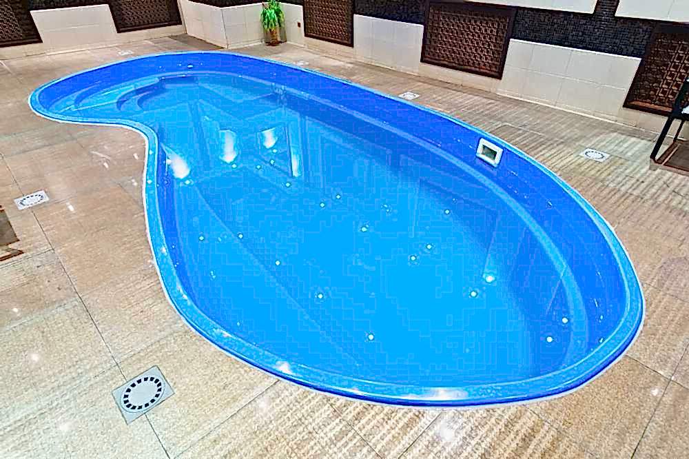 Имеет плавные изгибы силуэта чаши, по форме напоминающие природный водоем. Оснащена римской лестницей для обеспечения удобного входа в воду, которая представляет собой полукруглые плавно нисходящие в глубину ступени, расположенные в мелководной Пинап В глубокой части расположен комфортный полукруглый диван.