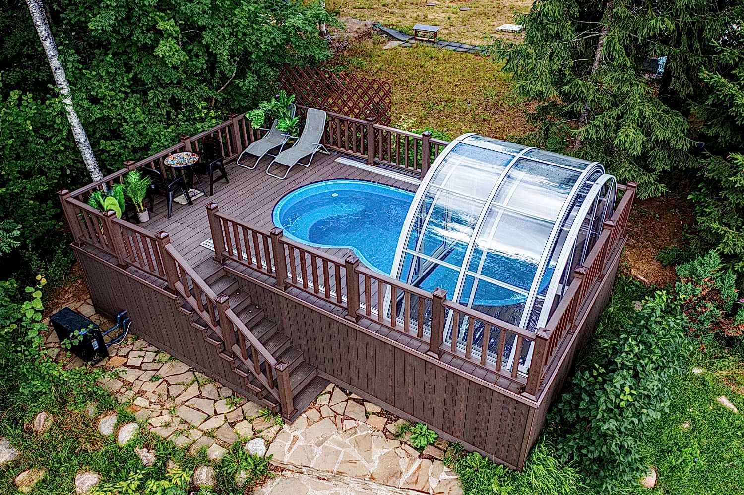 Имеет плавные изгибы силуэта чаши, по форме напоминающие природный водоем. Удобный диван, расположенный в боковой части бассейна, позволяет с особым Пинап наслаждаться водными процедурами под солнцем.